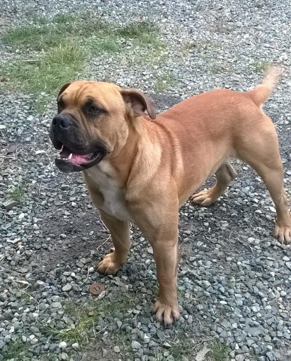 Hola compré un cachorro tiene tres meses y me comentaron que es de raza bullmastiff tengo algunas dudas yo le veo características de bullmastiff y de boerboel pero según entiendo descienden los dos de razas similares por lo que acude a ustedes los expertos para que me ayuden a identificar su raza