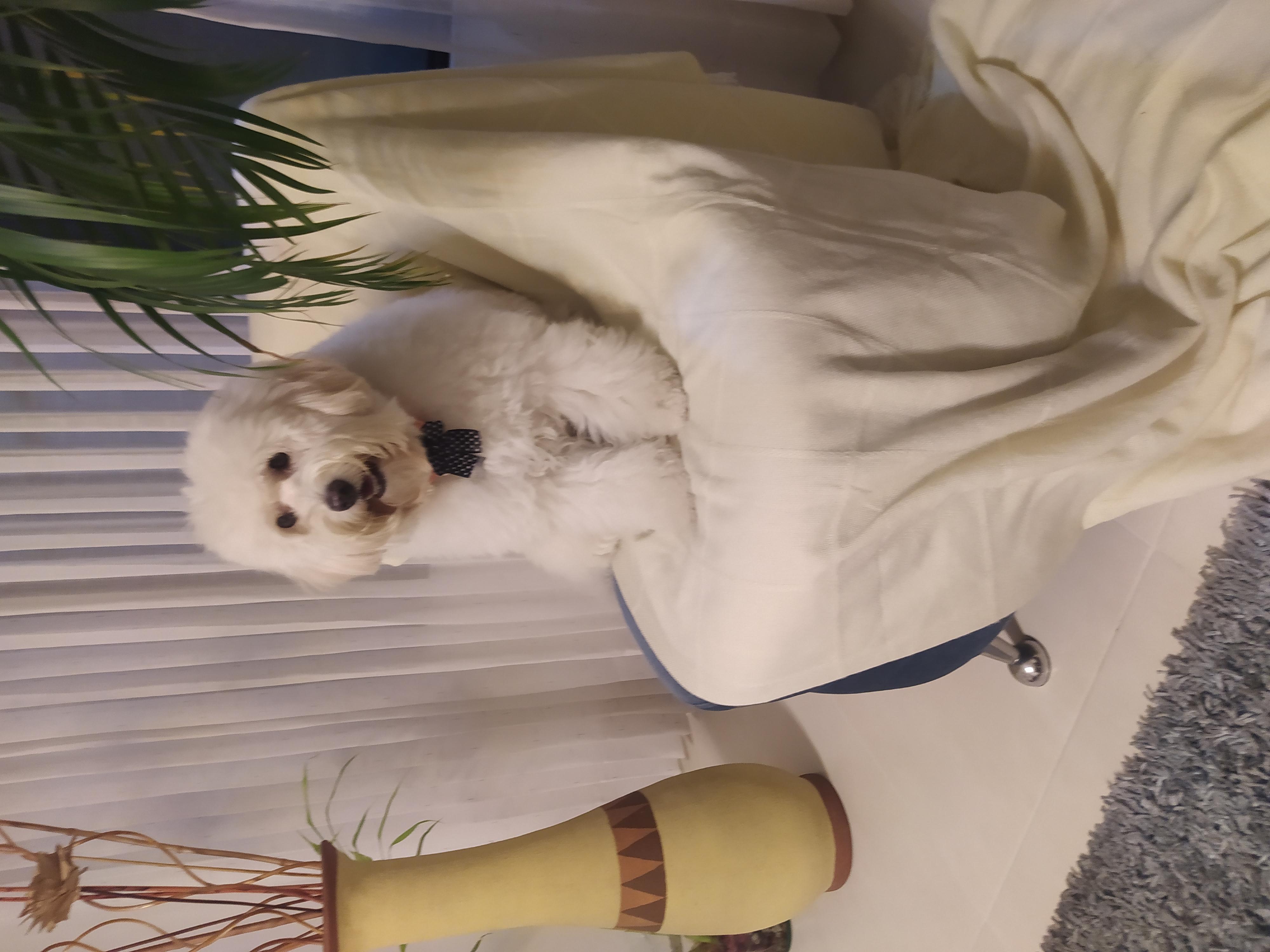 Mi Coton se llama Cotita, es maravillosa, alegre, divertida, inteligente, obediente, juguetona, etc., etc.