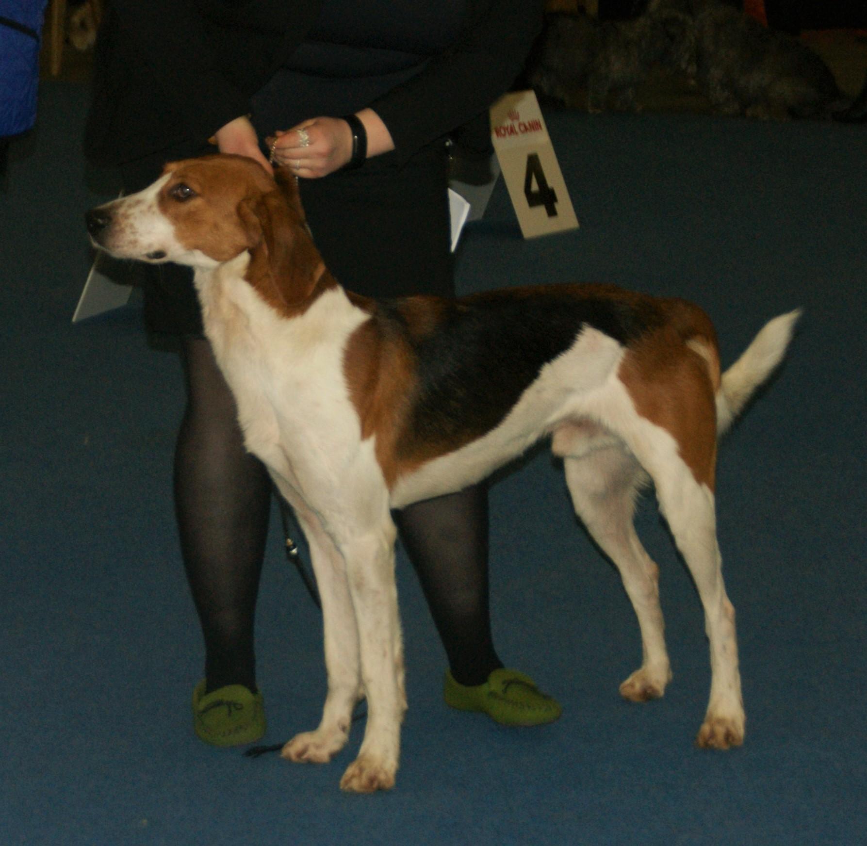 El cuerpo es atlético, con una espalda musculosa y robusta pero de mediana longitud. El lomo es ancho y ligeramente arqueado. El pecho es profundo pero relativamente angosto. La cola es de inserción alta, ligeramente curva y llevada en alto, pero nunca sobre la espalda. El pelaje de este foxhound es de mediana longitud, duro y tupido. Puede ser de cualquier color.