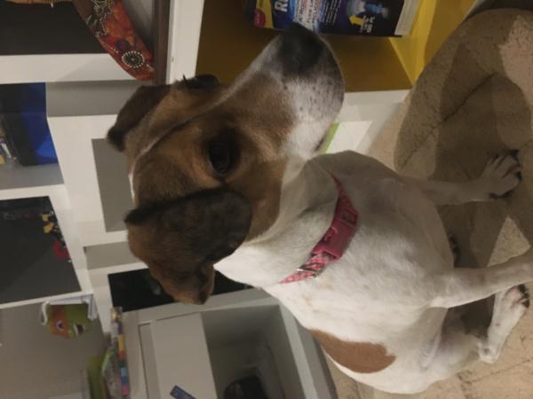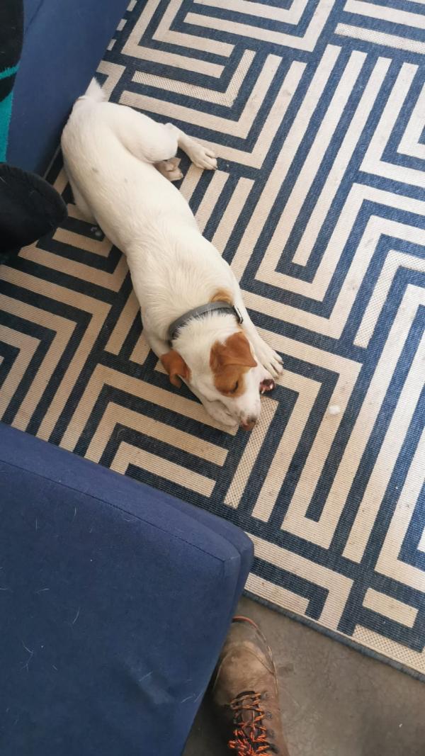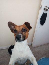 Adopté a este cachorro hace unos 6 meses, cuando llegó a casa la veterinaria me comentó que tenía aproximadamente 6 meses de edad, estaba un poco lastimado y al parecer sufrió abandono, pero aun así es muy chiple, mega juguetón y muy listo, ama jugar con los niños, aprende rápido las órdenes pero también a como evadirlas, ¿será un Jack Rusell o descendiente de uno? porque de altura mide 50 cm al lomo