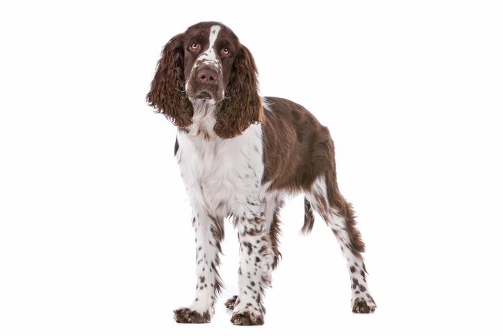 El perro springer spaniel inglés es una raza cuyo origen se remonta hace varios siglos atrás y que ha permanecido casi invariable. Es muy extrovertido y social, de contextura robusta y con un carácter muy dócil, por lo que es un excelente compañero. Por su naturaleza, es extremadamente ágil, atento e inteligente. Sus largas orejas con el pelo rizado son una de las características más notables y que lo hace muy similar al cocker spaniel inglés, con el cual comparte antepasados.