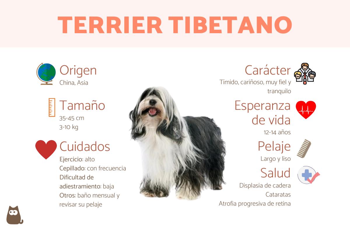 Pese a encontrarse catalogado dentro del grupo de los terriers, el terrier tibetano difiere mucho de sus congéneres, no presentando el carácter y las características típicas de otras razas terrier. Antiguamente acompañaban a monjes budistas, por suerte hoy en día acompañan a muchas familias alrededor de todo el mundo, lo cual es comprensible dada su personalidad cariñosa y juguetona, además de su inteligencia y docilidad. En esta ficha de ExpertoAnimal veremos toda la historia y evolución del perro terrier tibetano, así como todos los detalles sobre sus cuidados y educación.