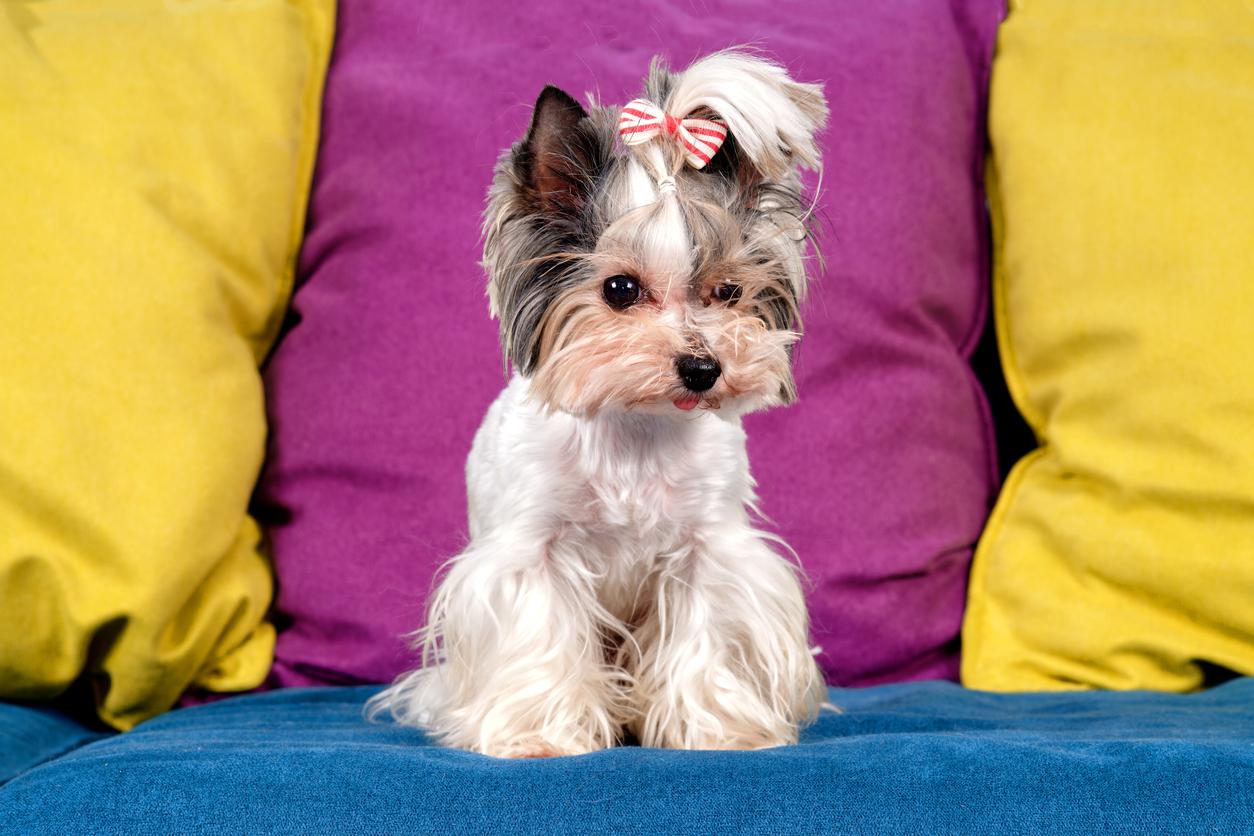 Los yorkshires blancos no requieren, en general, unos cuidados demasiado costosos pero, si queremos incorporar un perro de esta raza a la familia, sí que hay que tener en cuenta que debemos dedicar tiempo a mantener su manto saludable. Los parti yorkies apenas pierden pelo, lo cual lo convierte en un can con propiedades hipoalergénicas, ideal para personas sensibles o alérgicas. No obstante, su pelo nunca deja de crecer y es fácil que, con el tiempo, acumule suciedad, se enrede y acabe formando nudos. Para evitar esto, es recomendable cepillar al yorkshire blanco con bastante frecuencia utilizando un cepillo especial para perros de pelo largo e ir retocándolo a medida que crezca para que no entorpezca sus movimientos o le ocasione molestias. Si nos resulta complicado mantener intacto el pelo natural de esta raza, podemos optar por cortárselo nosotros mismos o acudir a un estilista canino con regularidad pero, a no ser que sea estrictamente necesario por algún motivo de salud, jamás debemos raparle, puesto que dejamos su piel demasiado expuesta y eliminamos su principal capa de protección contra la suciedad, los parásitos y los cambios de temperatura.