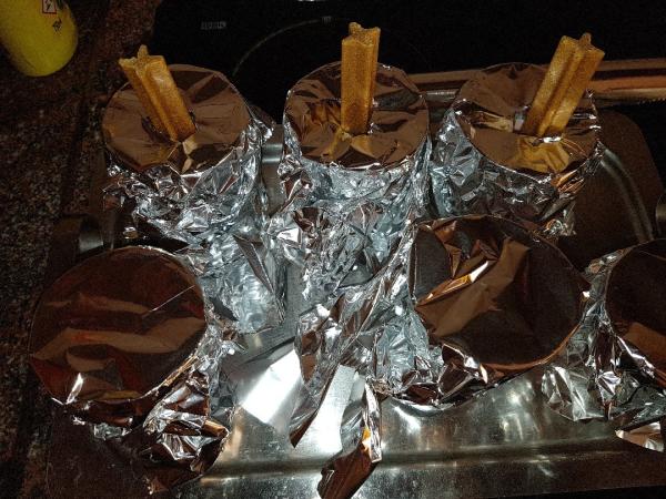 - Si no es específico para preparar helados, tápalo con papel vegetal y haz un agujero en el centro para introducir el snack en forma de palito con el que vas a poder sujetar el helado. El papel puedes fijarlo con una goma elástica.