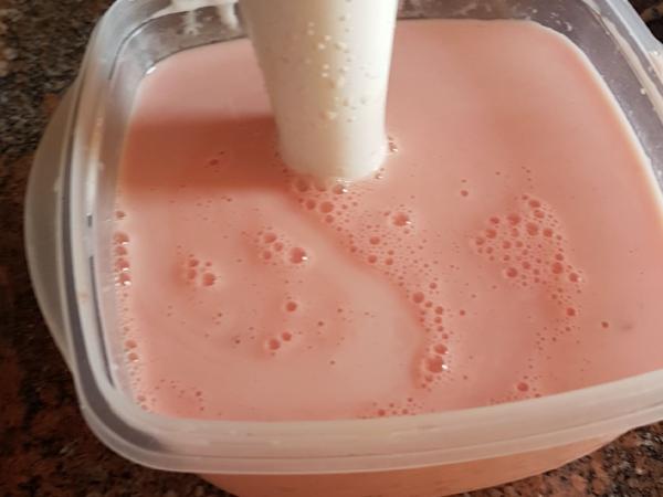 - Vierte la mezcla en el recipiente que vayas a meter en el congelador.