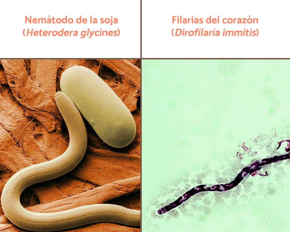 - Nemátodo de la soja (Heterodera glycines): parasita las raíces de la soja, causando graves problemas en los cultivos.