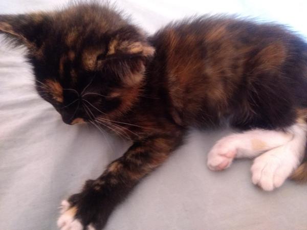 Si se trata de un gatito pequeño, en vez de usar un spray o un baño directo con manzanilla, puedes untar un algodón con la solución de manzanilla y aplicarla de forma suave y con cariño por todo el cuerpo del pequeño, sobre todo en las partes traseras y la cola.