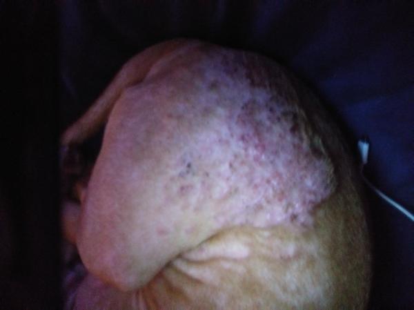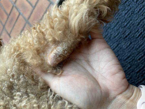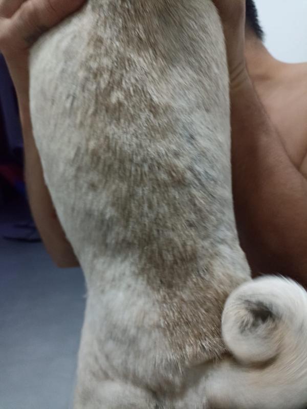Hola! Mi perrita tiene como unas ronchas blancas (se podría decir que parece caspa pero no sale tan fácil) en los codos, alguien ha tenido un problema similar? Gracias!