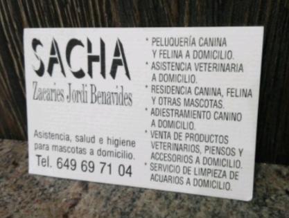 Sacha es una empresa dedicada a las mascotas, con un equipo compuesto por profesionales con más de 30 años de experiencia en el sector, que ofrece varios servicios relacionados con la salud, higiene, alimentación y, en general, con el bienestar de perros y gatos. De esta forma, destacan los siguientes servicios: