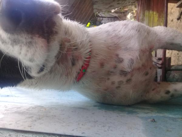 - Picazón tan intensa que el perro no puede dejar de rascarse y morderse las zonas afectadas. Puede ser en cualquier parte del cuerpo, pero generalmente empieza en orejas, cara, axilas y vientre.