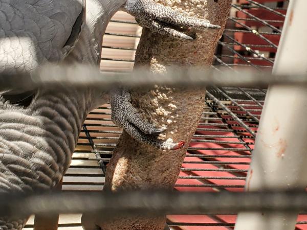 - Recorte completo: consiste en cortar las plumas primarias y secundarias, por lo que el ave es incapaz de planear o volar.