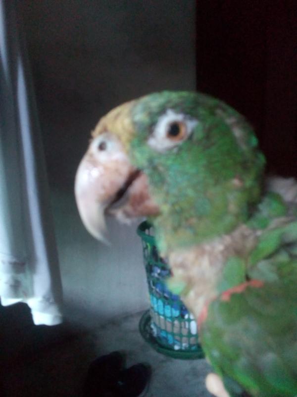 Ayuda mi loro la mayoría del tiempo tiene un ojo serrado e inchado y no lo puede abrir también la noto triste,con temblor, muy débil,su plumaje no luse bien, y en una de sus patas no puede serrar dos garras o uñas y por último le teme a todo el que se le acerque y como que le duele o nose pero la pata mala que tiene que es donde tiene las dos uñas malas no puede pararse bien.