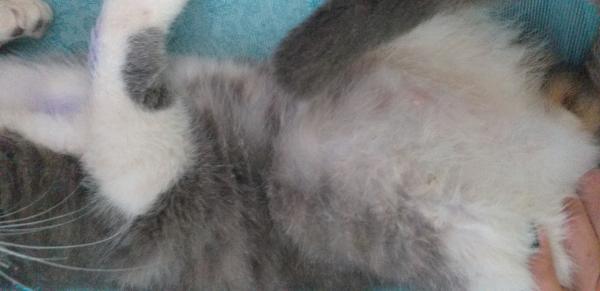 Buenas tardes, mi gato tiene una bola grande en el estómago y ha estado tirando un líquido por el trasero ... Está decaido y algo débil