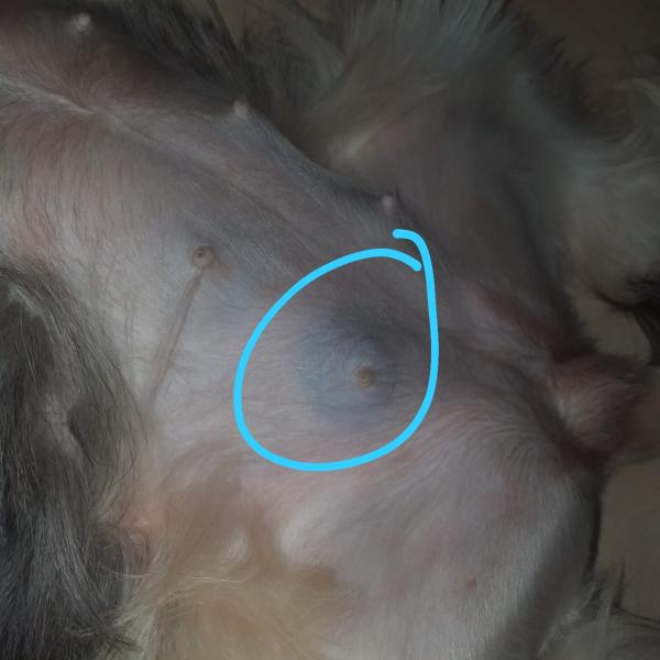 Mi perrita estaba en celo hace dias está presentado hinchazón de mama y alrededor se le ven moradas es una snausher