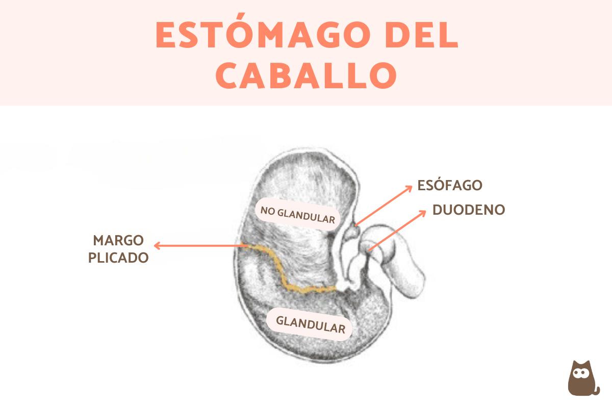 Como ves, el caballo tiene un solo estómago y no regurgita el alimento, a diferencia de otros animales herbívoros como los rumiantes. Aquí te explicamos más detalles: "¿El caballo es rumiante?".