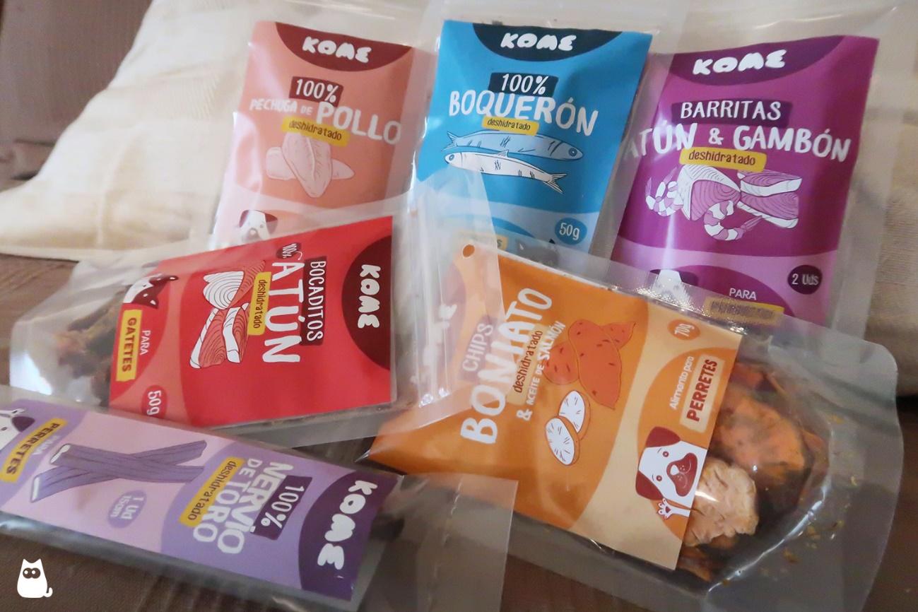 A modo de ejemplo, repasamos a continuación los snacks naturales que ofrece la marca de alimentos para perros y gatos KOME. Puedes tener a mano varios y utilizar uno u otro según las preferencias de tu perro y lo que quieras conseguir de él, por ejemplo, distraerlo en un momento especialmente complicado: