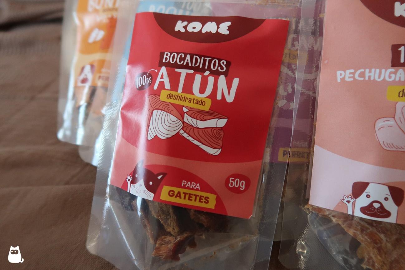 Además de los snacks para perros, KOME ofrece una opción que también es apta y recomendable para los gatos. Son los bocaditos de atún desmigado, compuestos por un 100 % de atún de aleta amarilla. Nada más. Resultan una buena manera de reducir el colesterol, gracias a su alto contenido en grasas poliinsaturadas. Además, cuidan de la salud de la piel y del pelaje por su elevado aporte de dos ácidos grasos claves, como son el omega 3 y el 6.