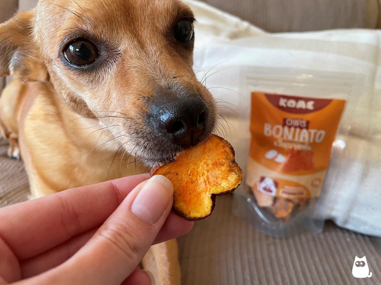 Los chips de Kome son de boniato y están bañados en aceite de salmón. Contienen nada más que un 99 % de boniato fresco y un 1 % de aceite de salmón. El producto final resulta un excelente antioxidante, que ayuda a cuidar la piel y el pelo de tu perro, luciendo brillante y sano. Además, aporta un elevado contenido en potasio y en hierro. Por todo ello, es también es un excelente snack natural para cachorros incluso antes de cumplir los 5 meses, eso sí, previamente troceado para evitar que se atraganten.