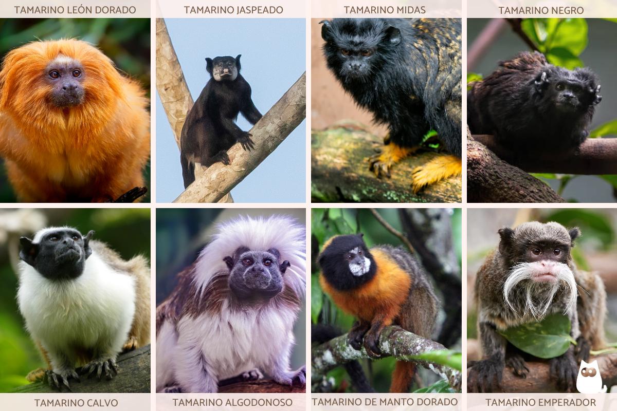 Si bien el grupo de los tamarinos es diverso, aquí nombramos algunas de las especies más conocidas: