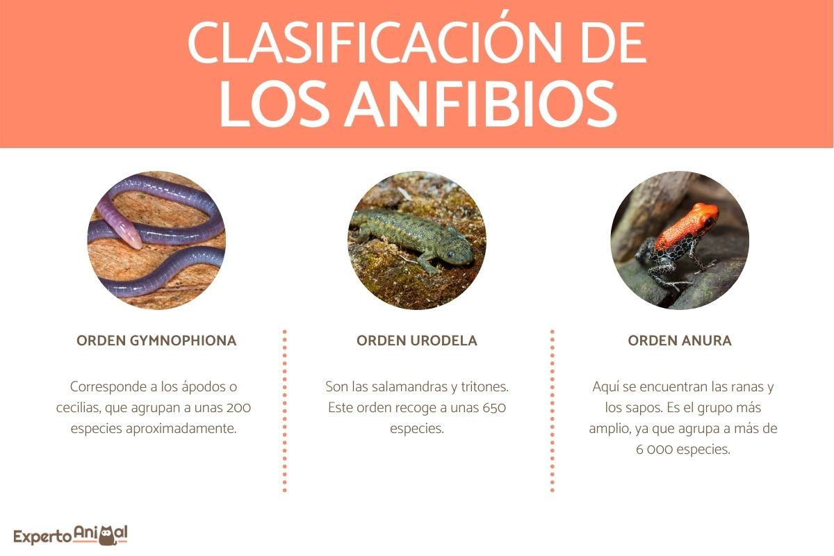 Los anfibios pertenecen a la clase Amphibia, la cual se divide en tres órdenes: