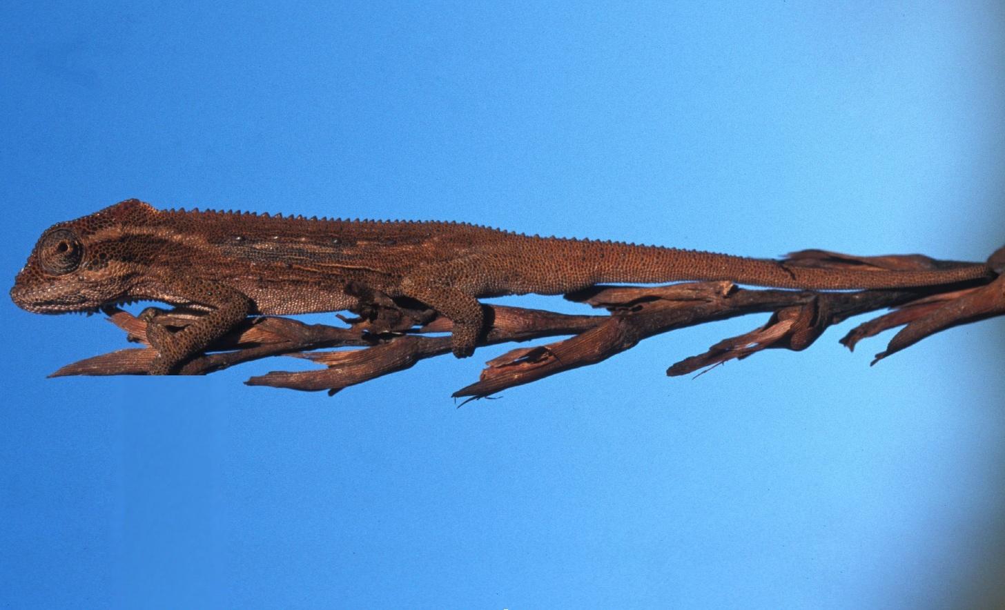 - El camaleón enano de Smith es un reptil endémico de Sudáfrica, en peligro de extinción debido a la destrucción de su hábitat. Utiliza su capacidad de cambio de color para camuflarse, contrariamente a la creencia popular, es una de los pocos camaleones con esta habilidad.