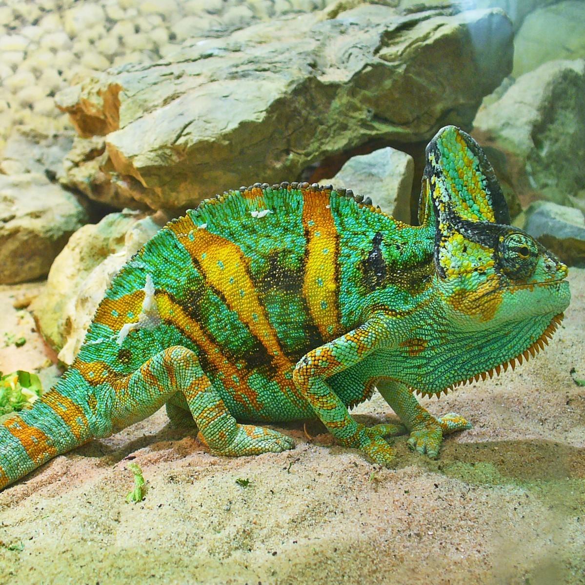 Los camaleones pertenecen a la familia de los Chamaeleonidae, son pequeños reptiles escamosos que pertenecen al clado de los saurópsidos, la mayoría de las especies viven en ambientes forestales, como los que se encuentran en África y Madagascar. Característicos por la forma de sus patas, el movimiento independiente de sus ojos y la estructura de su lengua.