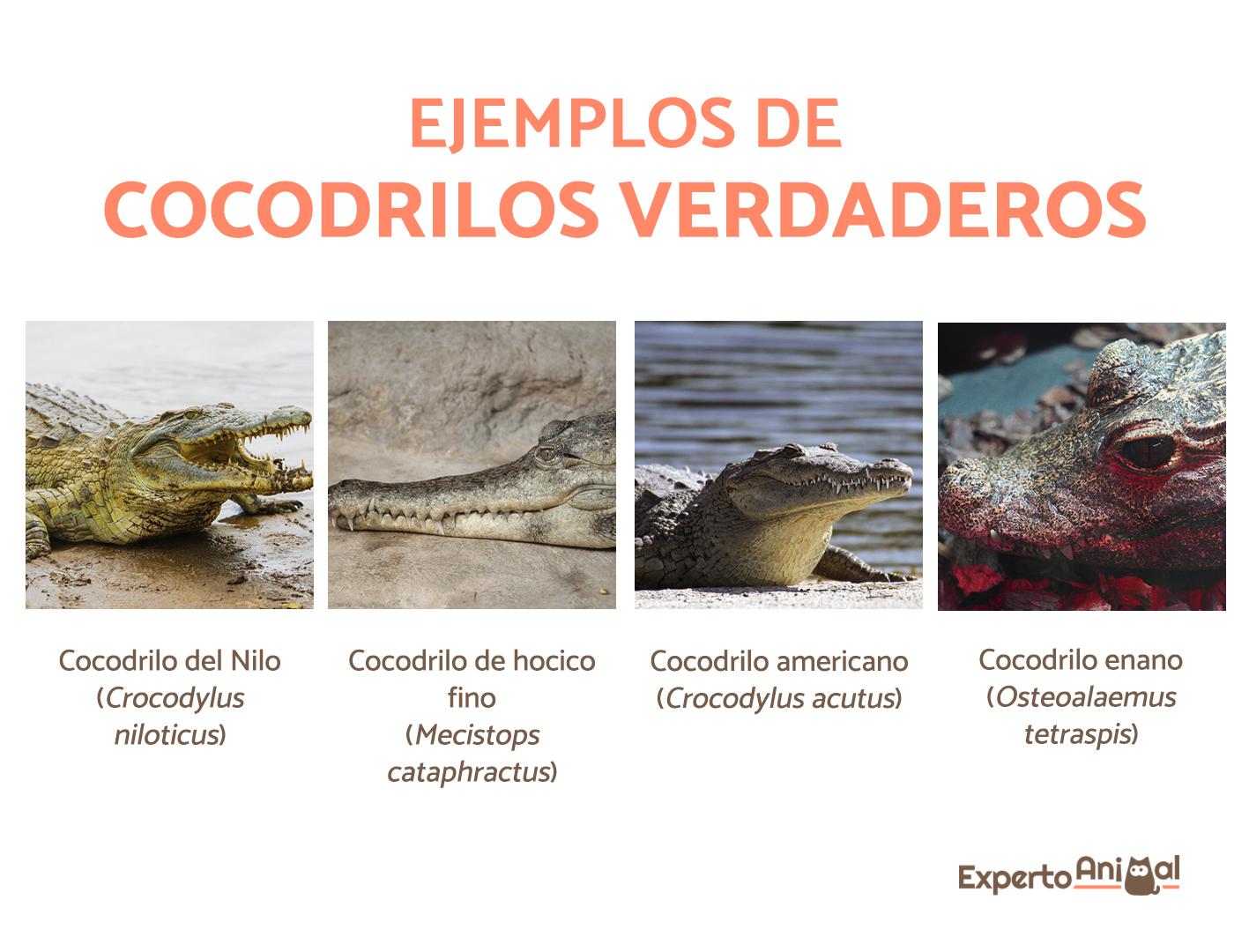 Los cocodrilos verdaderos incluyen algunas de las especies de mayor tamaño. El cocodrilo del Nilo (Crocodylus niloticus), por ejemplo, puede llegar a alcanzar 6 metros de longitud. Además, estos animales son muy longevos y suelen vivir entre 50 y 80 años. Son reptiles con una fuerte musculatura y una potente mandíbula. De esta, salen unos grandes dientes que quedan por fuera de la boca cuando la tienen cerrada.