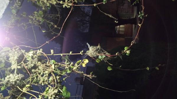 En mi puerta de mi casa un colibri hizo su nido, uno del 11 de febrero nos dimos cuenta que tenía dos huevito, el sábado 20 febrero ya había salido de cascarón un polluelo, me da gusto tener un colibri en casa