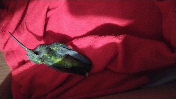 Encontré un colibrí pienso no muy adulto, por su plumaje y tamaño, su ala derecha está mal, no puede volar ni aletear tanto, he estado alimentándolo con néctar que conseguí, lleva 12 días conmigo y ha sobrevivido, aletea un poco más pero tengo duda si en algún momento pueda volar adecuadamente, aún no levanta bien el vuelo, quiero saber si puedo hacer más por él en cuanto a alimentación, lo mantengo en un cajita con temperatura templada, pero quisiera saber si puedo hacer algo más que lo que he hecho