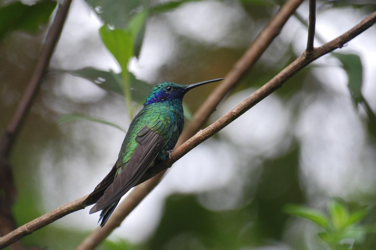 El colibrí orejimorado, Colibrí serrirostris, habita por toda Sudamérica. Las zonas habitadas por esta especie son los bosques secos tropicales y subtropicales, sabanas, y bosques degradados. Los machos miden 12,5 cm y pesan 7 g, mientras que las hembras miden 11 cm y pesan 6 g. Esta especie es muy colorida, siendo el plumaje de los machos más intenso que el que lucen las hembras.