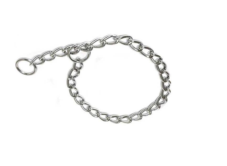 Los collares de ahorque suelen estar compuestos por una cadena metálica y una argolla en cada extremo. Al pasar uno de los extremos por la argolla opuesta, formamos un lazo con el collar que deberemos pasar por la cabeza del perro. Tal y como están creados, cuando el can tira de la correa el collar ejerce una presión en su cuello del mismo nivel que el tirón. Es decir, si el perro tira muy fuerte, el collar ahogará a nuestro can con la misma fuerza.