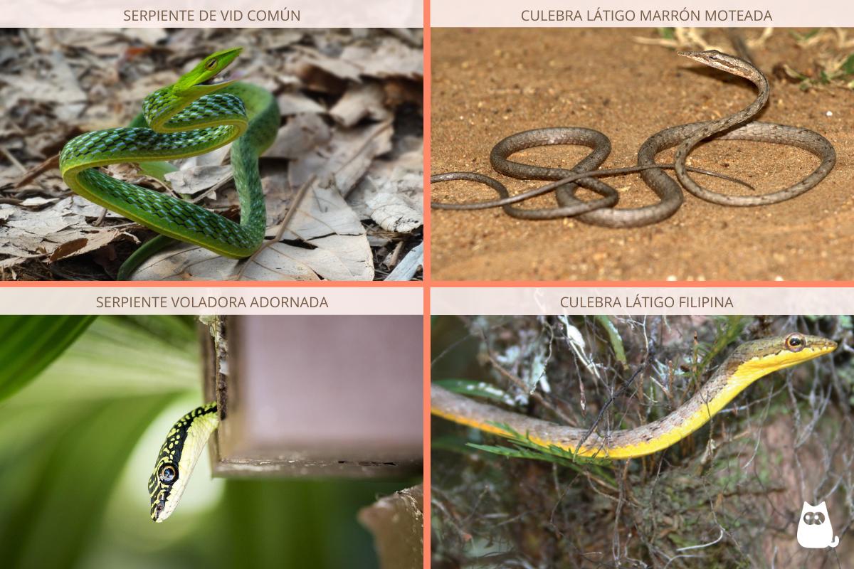 Algunas especies de culebras de la subfamilia Ahaetuliinae son: