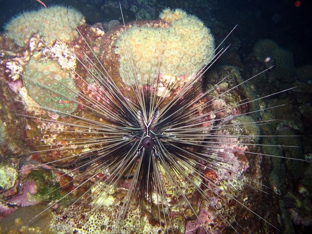 También conocido como erizo de espinas largas, esta especie habita en el Mar Caribe y la cuenca del océano Atlántico occidental, donde habita aguas poco profundas en arrecifes de coral. Cumple un importante rol ecológico, ya que se encargan de mantener estables las poblaciones de muchas especies de algas, que de otra forma pueden llegar a cubrir los corales. Es una especie herbívora, pero que en ocasiones, cuando escasea su alimento, puede volverse carnívora, como explicamos en este otro artículo sobre ¿Qué comen los erizos de mar? Este tipo de erizo de mar es de color negro y su característica más llamativa es la presencia de largas espinas, las cuales miden cerca de 12 cm, existiendo individuos grandes donde pueden llegar a medir más de 30 cm.