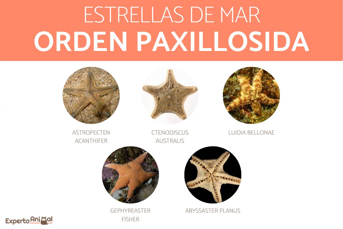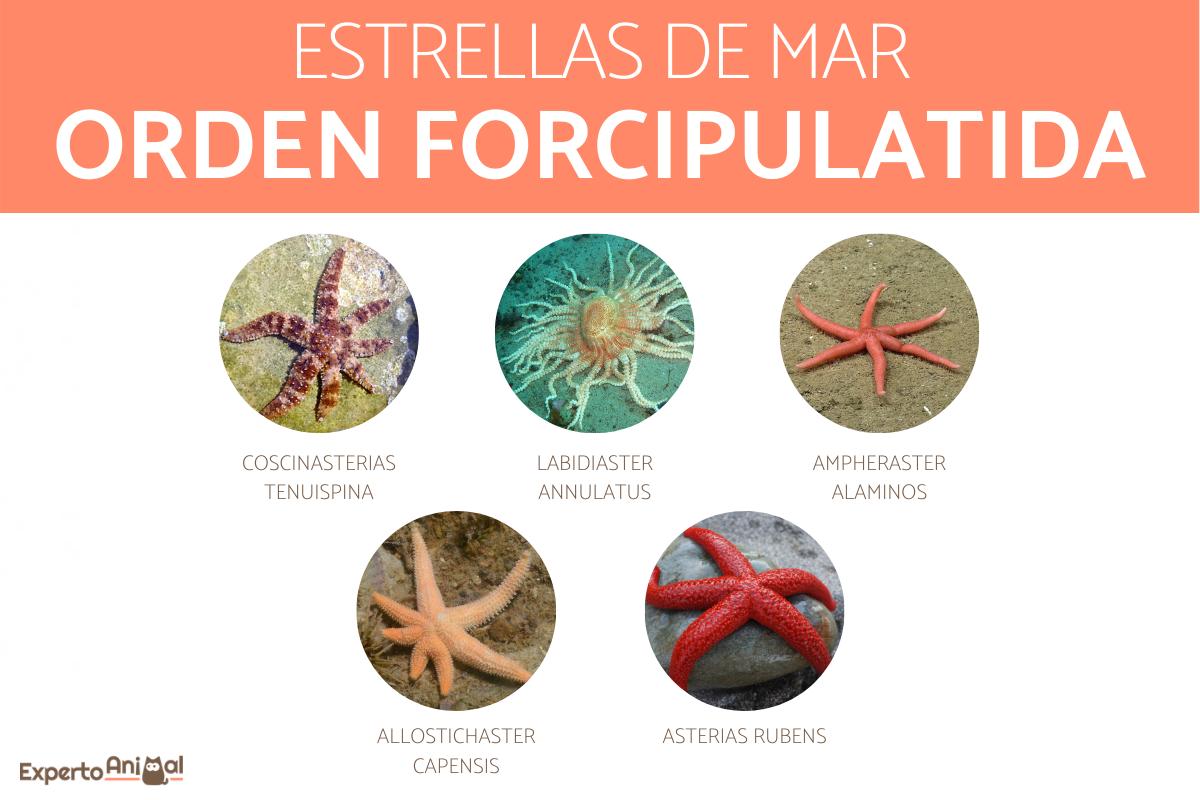 Existe divergencia en cuanto a su clasificación, sin embargo, una de las aceptadas considera la existencia de 7 familias, más de 60 géneros y unas 300 especies. Dentro de este orden encontramos a la estrella de mar común (Asterias rubens), una de las más representativas, pero también podemos ubicar las siguientes especies: