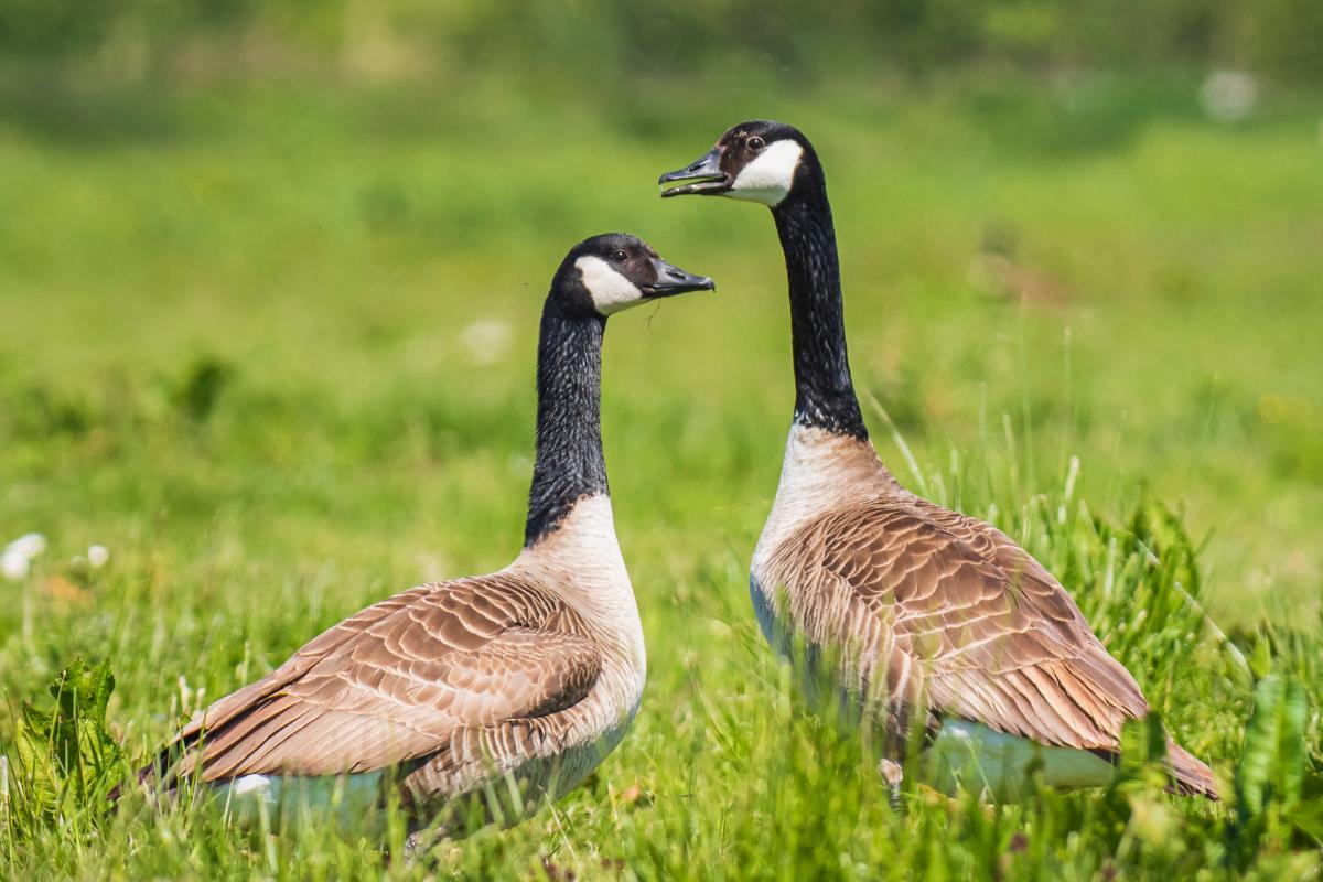 El ganso de Canadá es una de las especies de gansos silvestres más reconocibles gracias a su cuello y cabeza negros con una característica franja blanca bajo el pico. Es originario de América del Norte, pero ha sido introducido en Europa y otros continentes.