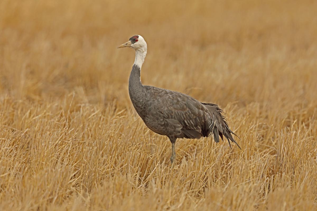 También conocida como “grulla de las Sandhills”, esta especie habita América del Norte y Siberia oriental. Es ligeramente más pequeña que la grulla común, de plumaje gris pardo y una mancha roja en la cabeza.