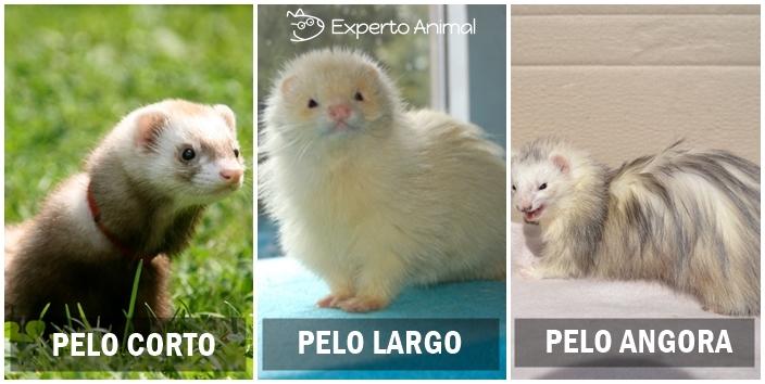 Finalmente y ya para terminar con la clasificación de los hurones según sus características físicas debemos saber que nos encontramos con tres tipos de pelaje. El más común de todos ellos es el pelo corto o estándar ya que la mayoría de los hurones lo presentan.