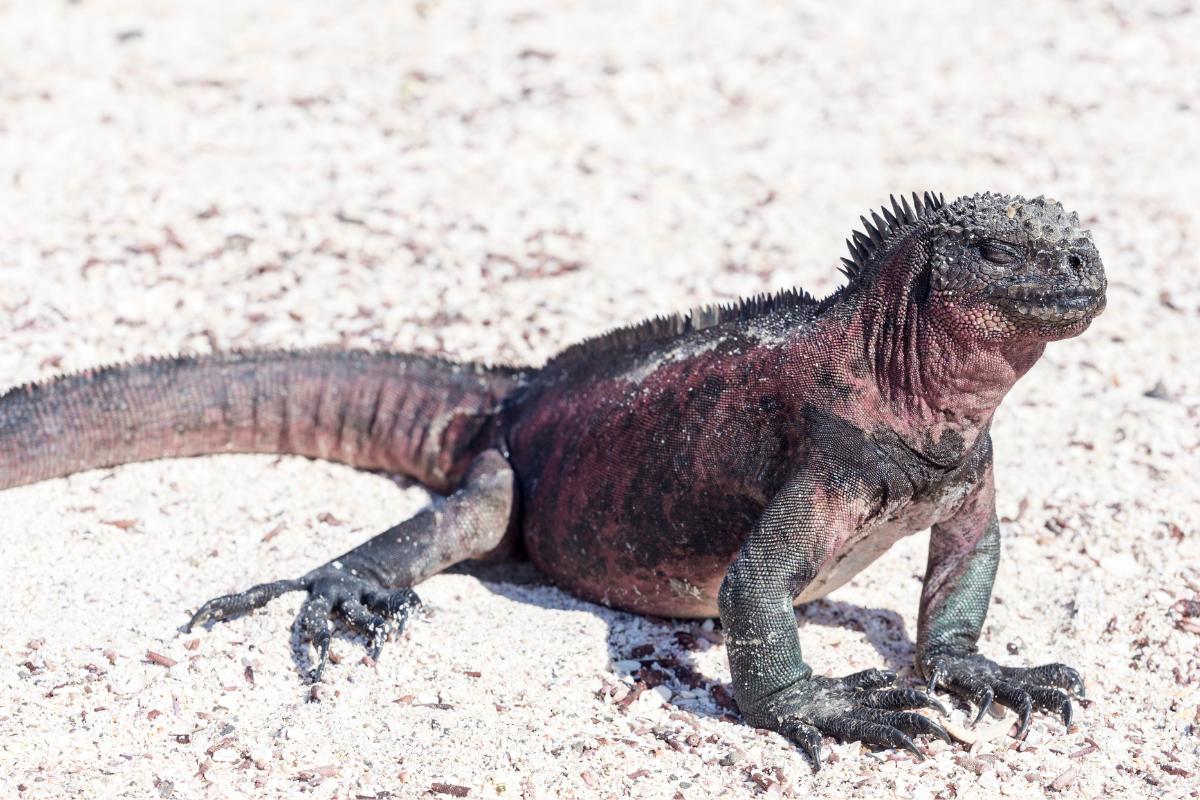 El último tipo de iguana que existe es el que corresponde con la especie Amblyrhynchus cristatus. Este tipo de iguana único porque es capaz de bucear en el mar para buscar su alimento, compuesto principalmente de algas. Es endémica de las Islas Galápagos y cuenta con una única especie, con 11 subespecies identificadas. Habita en zonas rocosas de las costas, aunque las hembras se adentran en el interior de las islas para anidar. Su tamaño varía entre 12 y 49 cm. Su estado de conservación es "vulnerable" debido a fenómenos ambientales, la depredación por animales exóticos y el impacto del turismo, que ha aumentado considerablemente.