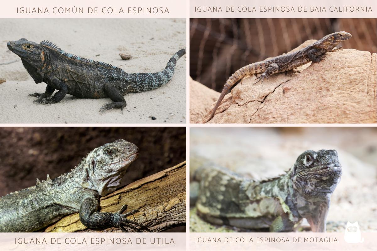 - Iguana común de cola espinosa (C. similis): de México, Centroamérica e islas del Caribe colombiano, casi amenazada.