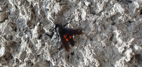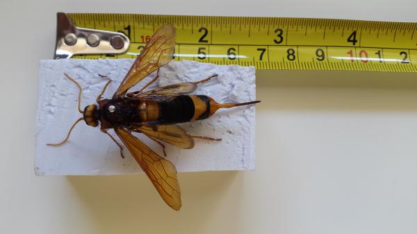 Buenas tardes, quería enviaros una foto de un insecto que he encontrado en una parroquia de Lugo (Pias) y no sé de qué se trata, parece un tipo de avispa pero nunca la había visto y es demasiado grande y con un aguijón imponente.