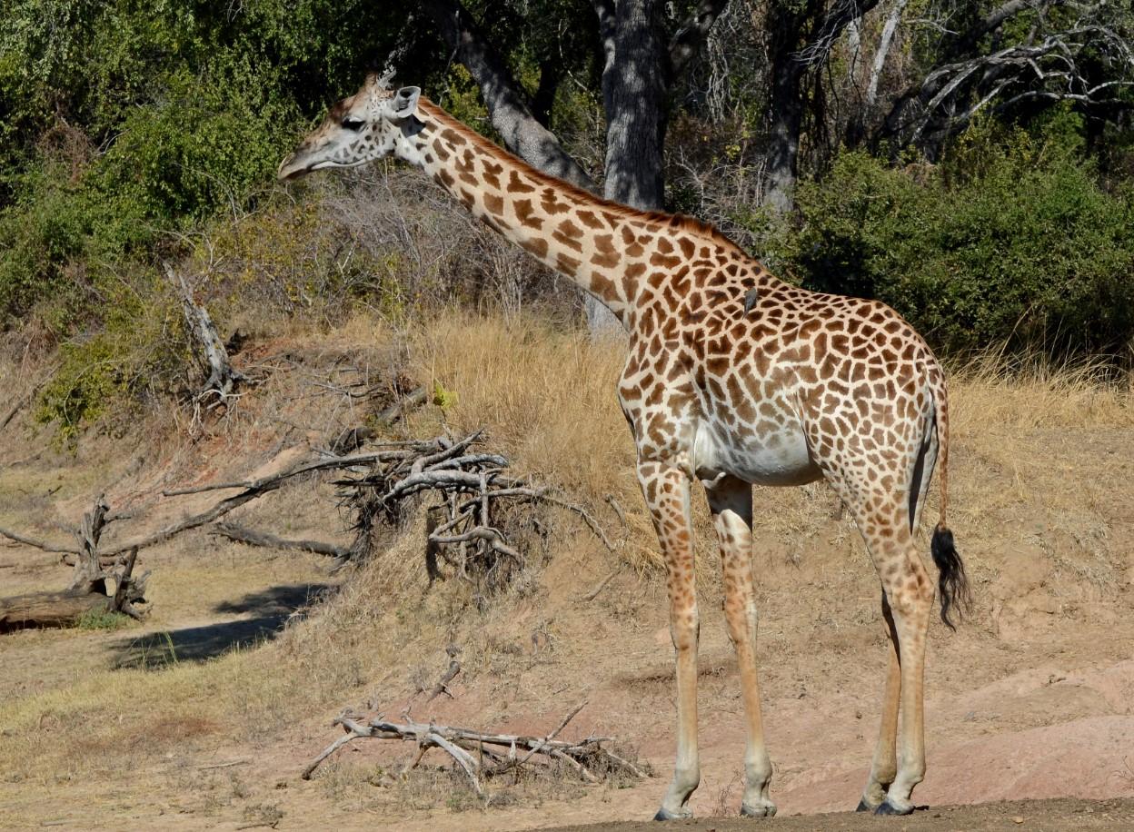 En esta zona, la jirafa de Rodesia se alimenta de más de 93 especies vegetales. Las manchas de esta subespecie se distinguen por sus bordes irregulares, un poco dentados, característica que permite diferenciarla de otras.