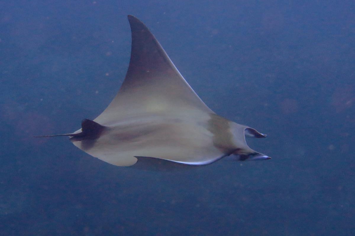 Con una envergadura que puede alcanzar poco más de 1 metro, la mantarraya enana es la más pequeña de todas las especies de mantarrayas. Vive en las cálidas aguas tropicales del Indo-Pacífico y es conocida por su agilidad y velocidad. Su tamaño reducido le permite moverse rápidamente en busca de alimento, principalmente plancton. Es una especie social y a menudo se la encuentra en grandes grupos, especialmente en zonas ricas en alimento.