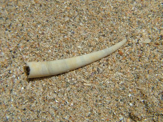 - Clase Scaphopoda: estos moluscos tienen el cuerpo muy alargado, al igual que su concha, que tiene forma de cuerno, por lo que son conocidos como conchas colmillos. Es uno de los más conocidos tipos de moluscos marinos.