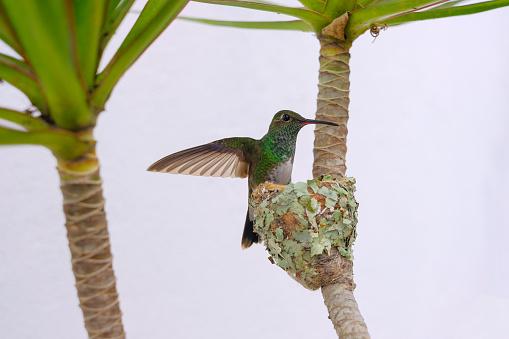 En la imagen observamos el curioso nido del colibrí de esmeralda. Si quieres conocer más en profundidad estas aves, no te pierdas este otro artículo: "Tipos de colibríes".