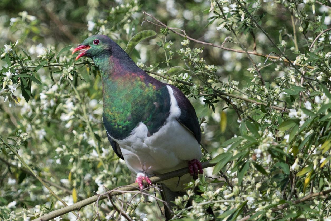 Esta hermosa paloma es endémica de Nueva Zelanda, desarrollándose en varias de las islas en bosques donde depende de árboles frutales. Mide unos 51 cm, de manera que nos encontramos ante una paloma de tamaño grande. Sin embargo, esta no es su principal característica, sino los colores de su plumaje, el cual destaca por tener una hermosa combinación entre blanco y verde.