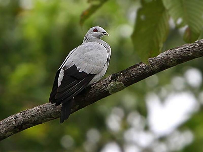 Esta especie de paloma es nativa de Indonesia y Malasia. Su color es gris claro plateado con los extremos de las alas y cola negros. Su dimensión es de unos 36 cm y el peso se sitúa alrededor de los 350 g. Se desarrolla tanto en manglares como en bosques costeros y está clasificada como en peligro crítico debido a la alteración del hábitat, caza e introducción de depredadores.