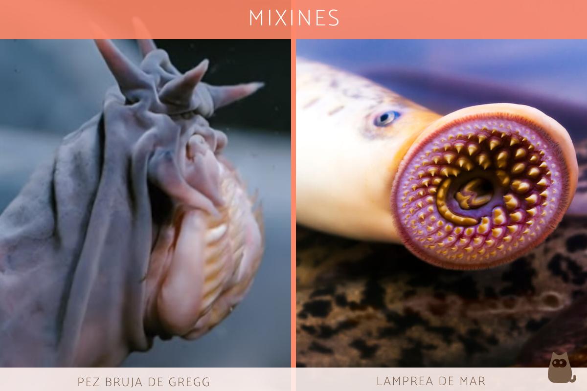 Dentro de los mixines, podemos destacar dos ejemplos de peces: