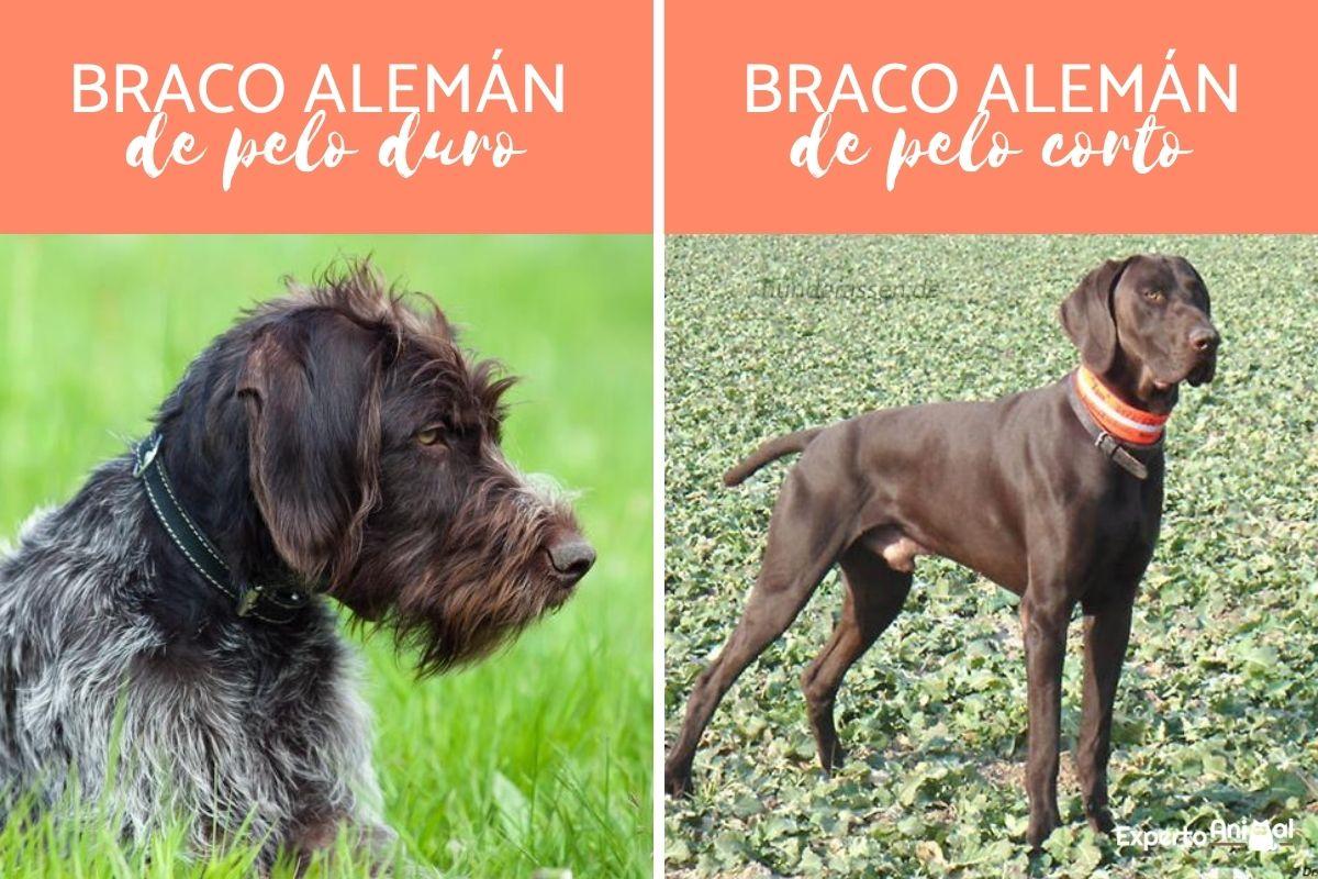- De pelo duro: más tranquilo, también cazador de aves, aunque posterior, pues surge a finales del siglo XIX. Tiene el pelo mucho más áspero que el braco alemán de pelo corto, siendo su pelo de tipo alambre.