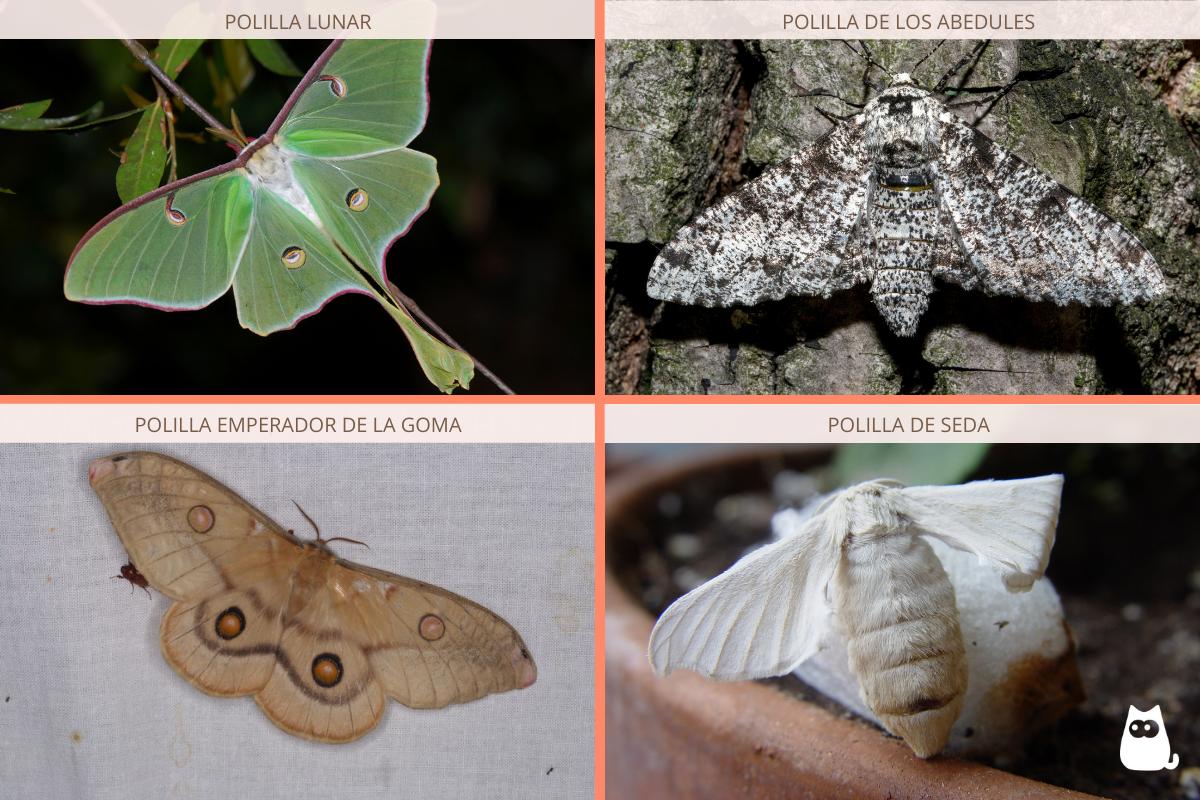 Entre los tipos de polillas grandes o gigantes podemos mencionar: