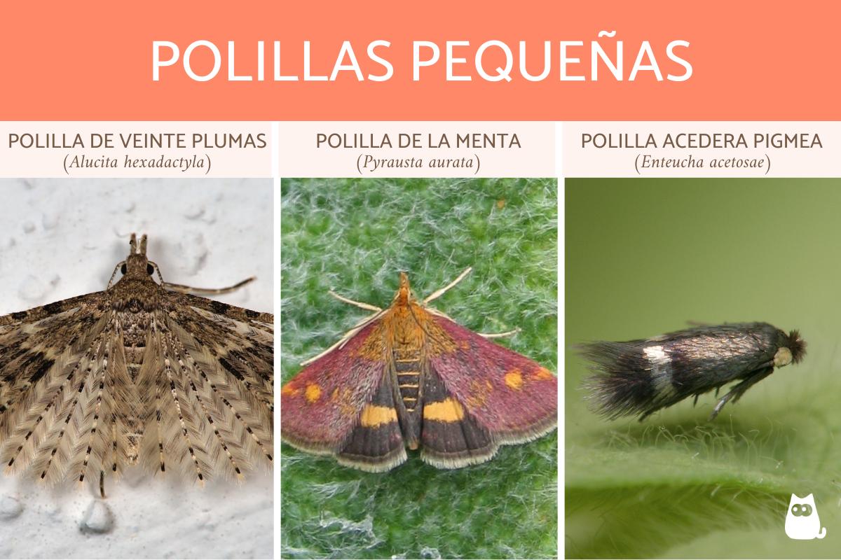 Otro de los tipos de estos lepidópteros son las polillas pequeñas, nombradas a veces como microheteróceros. Algunos ejemplos son: